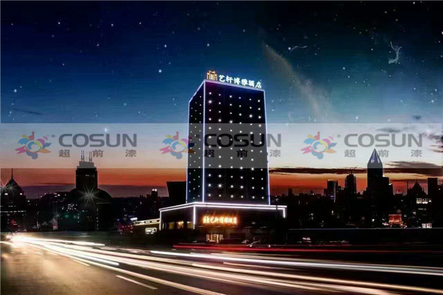 超前涂料 CCTV黃金展位合作伙伴山西臨汾侯馬藝軒酒店工地面積5000平方,超前外墻真石漆,以絕對的質量優(yōu)勢,成為該酒店指定的多彩真石漆供應商。也是該酒店錦上添花的一次完美合作。